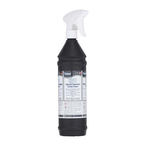 Toiee Special FUGERENS Extra Power (1000 ml). Spray Fugerens på og lad virke i cirka 10 minutter og skyl af. Fugerens renser og desinficerer effektivt sorte fuger. Fjerner effektivt mug og skimmel. Den enkleste måde til pæne og rene fuger